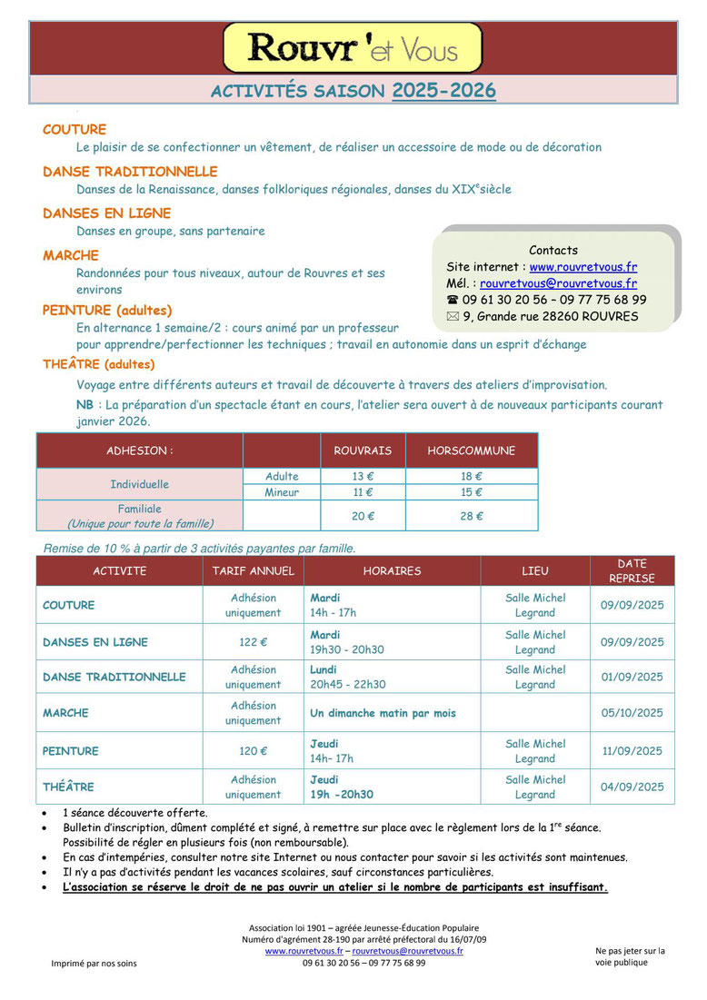 Pour faire votre choix et vous inscrire, vous trouverez ci-joint la nouvelle plaquette et le bulletin d'inscription.