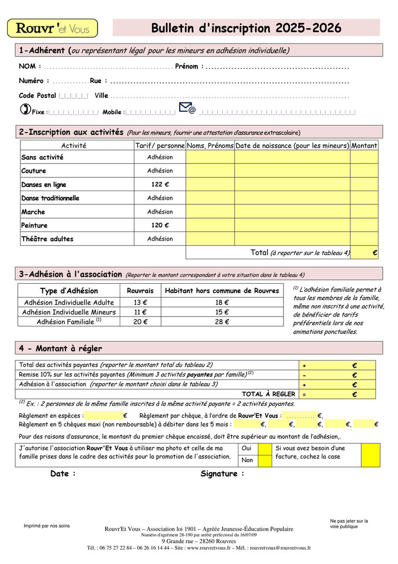 Pour vous inscrire à l'association vous pouvez télécharger et imprimer le bulletin d'inscription ci-contre.